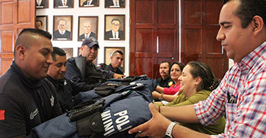 Como parte de la dignificación constante del cuerpo de Policía Municipal el H. Ayuntamiento de Coscomatepec hizo entrega de uniformes y equipo al personal operativo de la corporación que consta de uniformes, equipamiento táctico y equipo de radio comunicación.